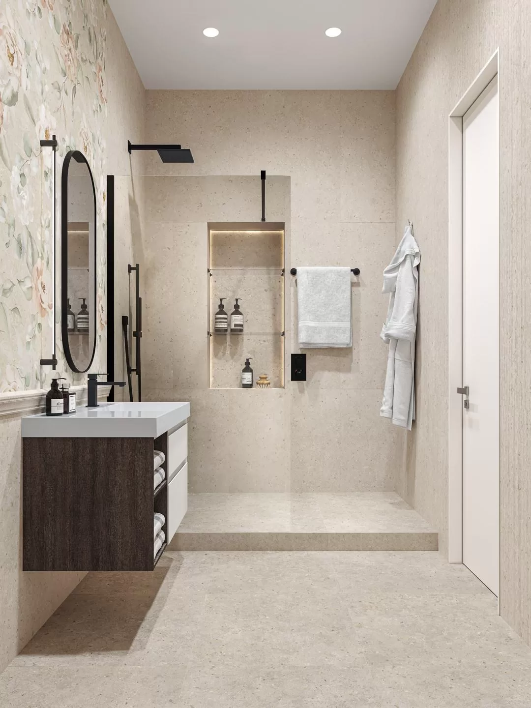 - плитка цветы в модерн стиле, в коллекции преобладает бежевый и светло-серый оттенок;